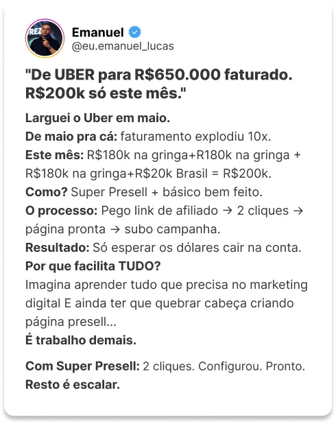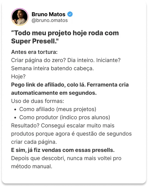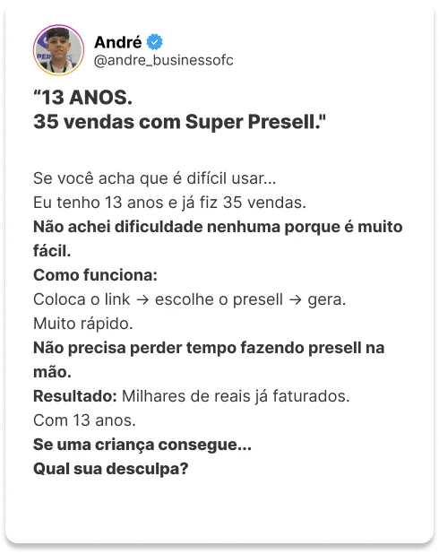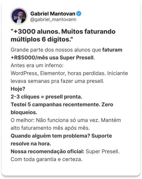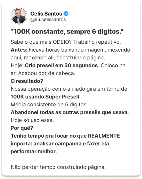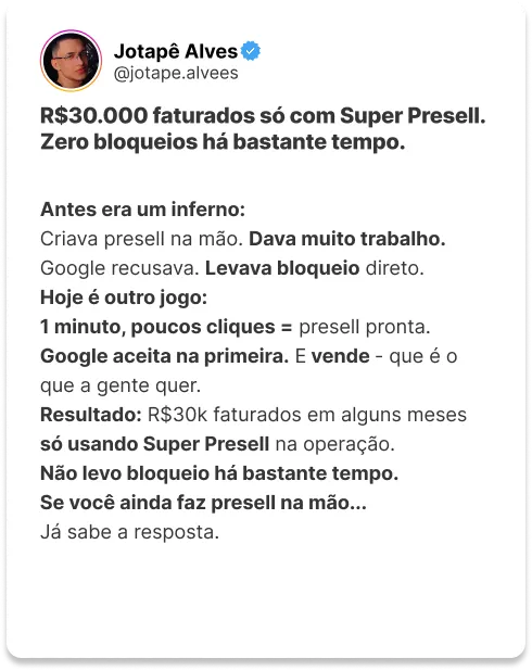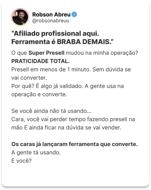 🎯Aumente suas vendas! Nossas páginas presell são otimizadas e aprovadas pelos Top Afiliados e te ajudam a converter mais e gerar mais comissões. O Super Presell é compatível com as principais ferramentas de trackeamento do mercado.