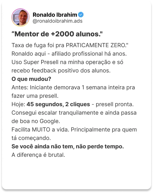 Sim! O Super Presell foi criado para ser usado por qualquer pessoa, mesmo sem conhecimento técnico. Basta colar seu link, escolher o modelo e a IA faz o resto.